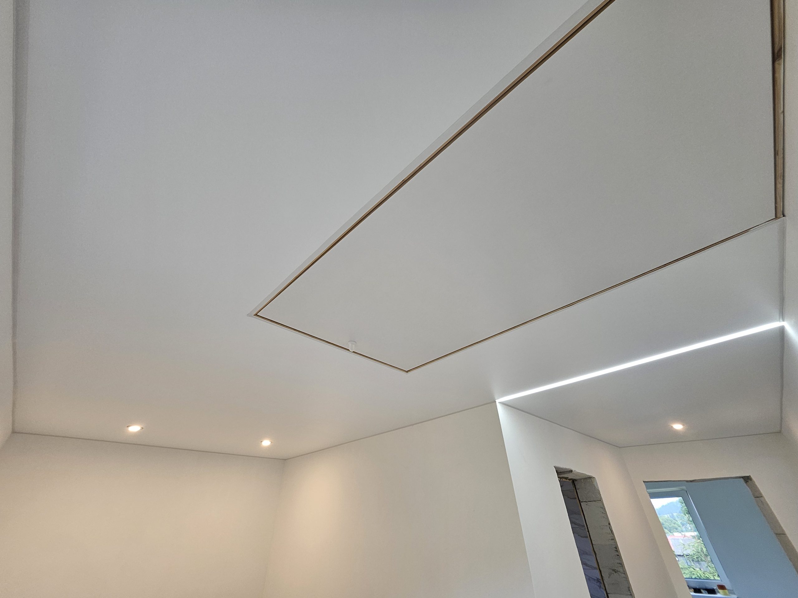Realizujeme stropy podľa vašich predstáv a požiadaviek. Každý projekt prispôsobíme interiéru a štýlu vášho priestoru – od moderných minimalistických až po luxusné elegantné stropy.