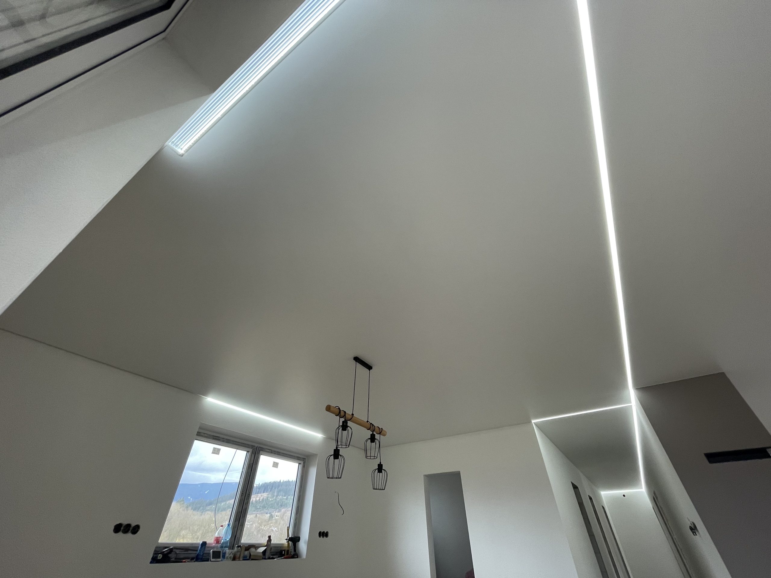 Naša práca zahŕňa kompletnú montáž napínacích stropov na kľúč, vrátane zapojenia svietidiel, LED pásikov a rôznych doplnkov podľa vašich predstáv. Každý projekt realizujeme s dôrazom na kvalitu, precíznosť a spokojnosť zákazníka.